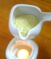 ココアバター15gをクリーム専用のウォーマーで溶かします。
