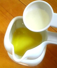)溶けたら、マカダミアナッツオイルを5ml入れます。