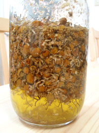 今度は、カモミールの石けんを作ろうと思い、ハーブを漬け込みました。