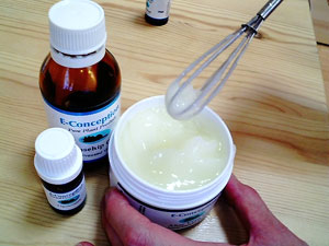 これも、オイル量って水量って、泡だて器でぐるぐるして… 料理みたいなもんです。