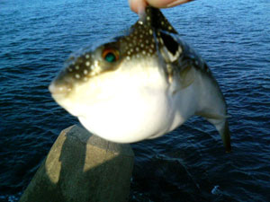 でも時々、フグを釣っちゃったり、父を釣っちゃったり(釣り針が刺さって・・・